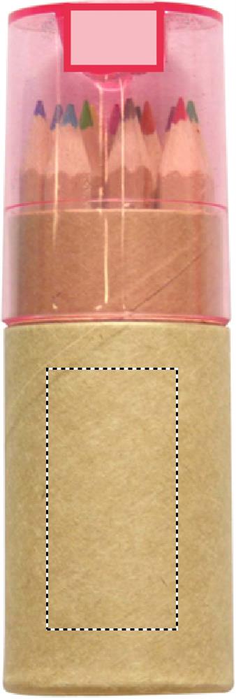 12 Buntstifte in einer Schachtel. Transparenter Deckel mit Bleistiftspitzer.