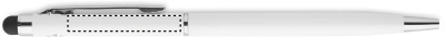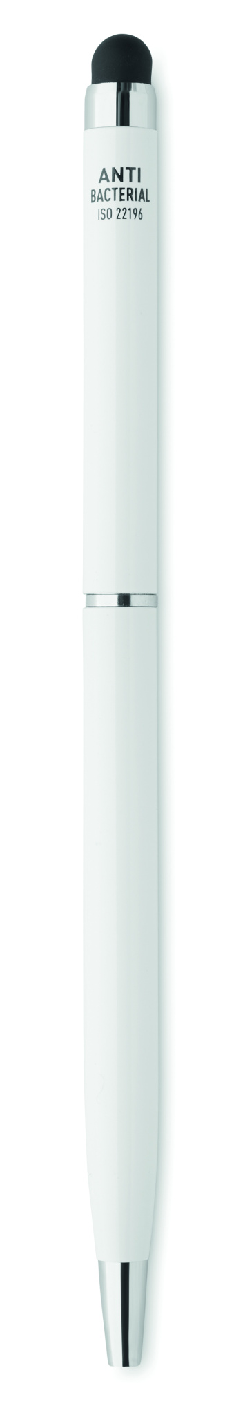 Drehkugelschreiber mit Stylus aus Aluminium. Antibakterieller Schaft. Glänzend verchromter Clip. ISO 22196. Blaue Tinte.