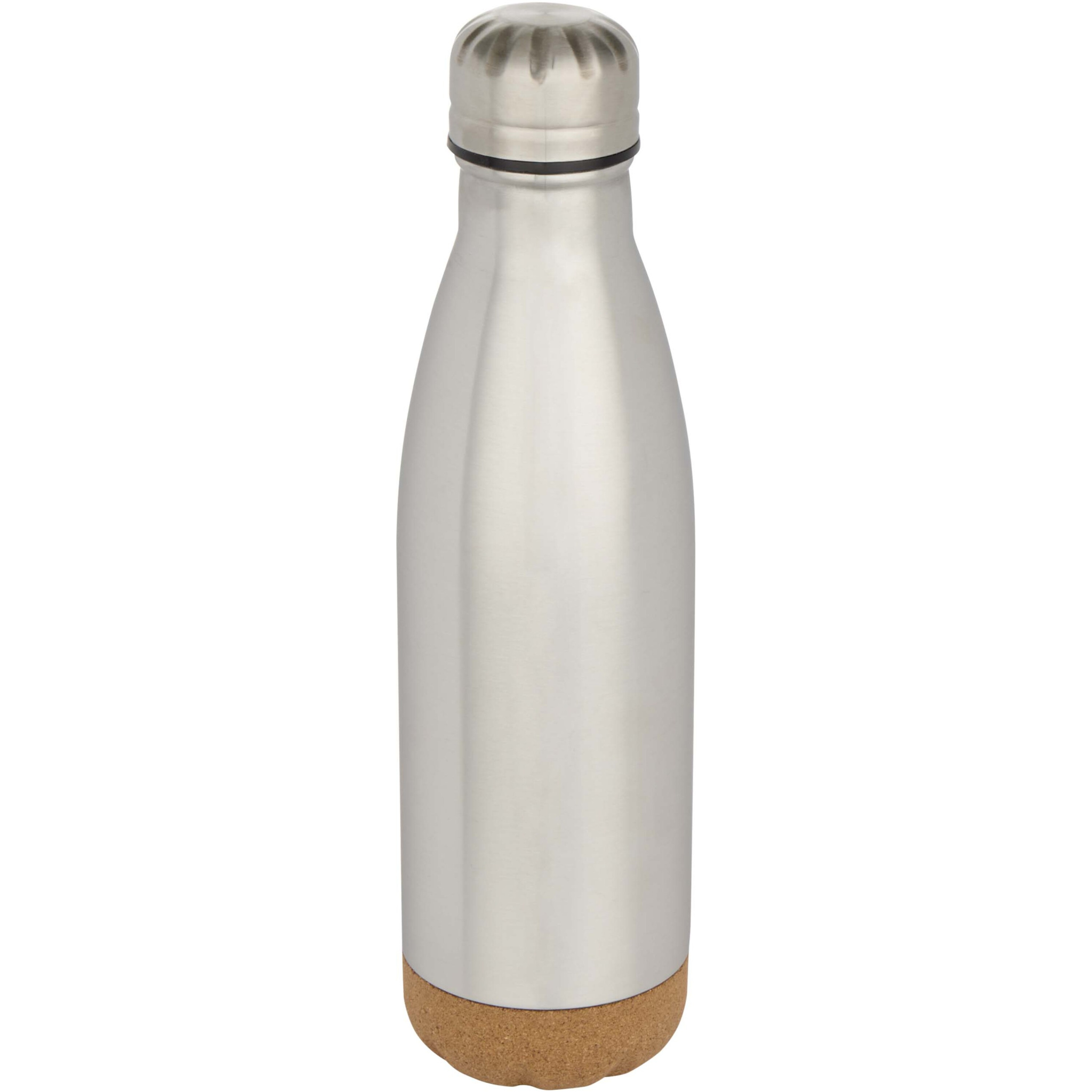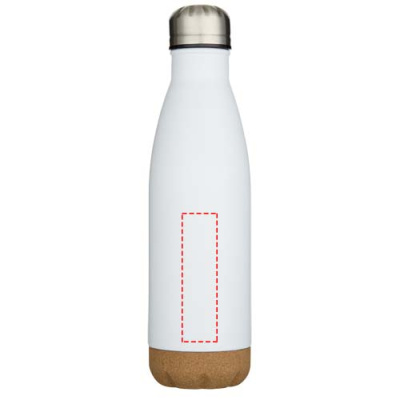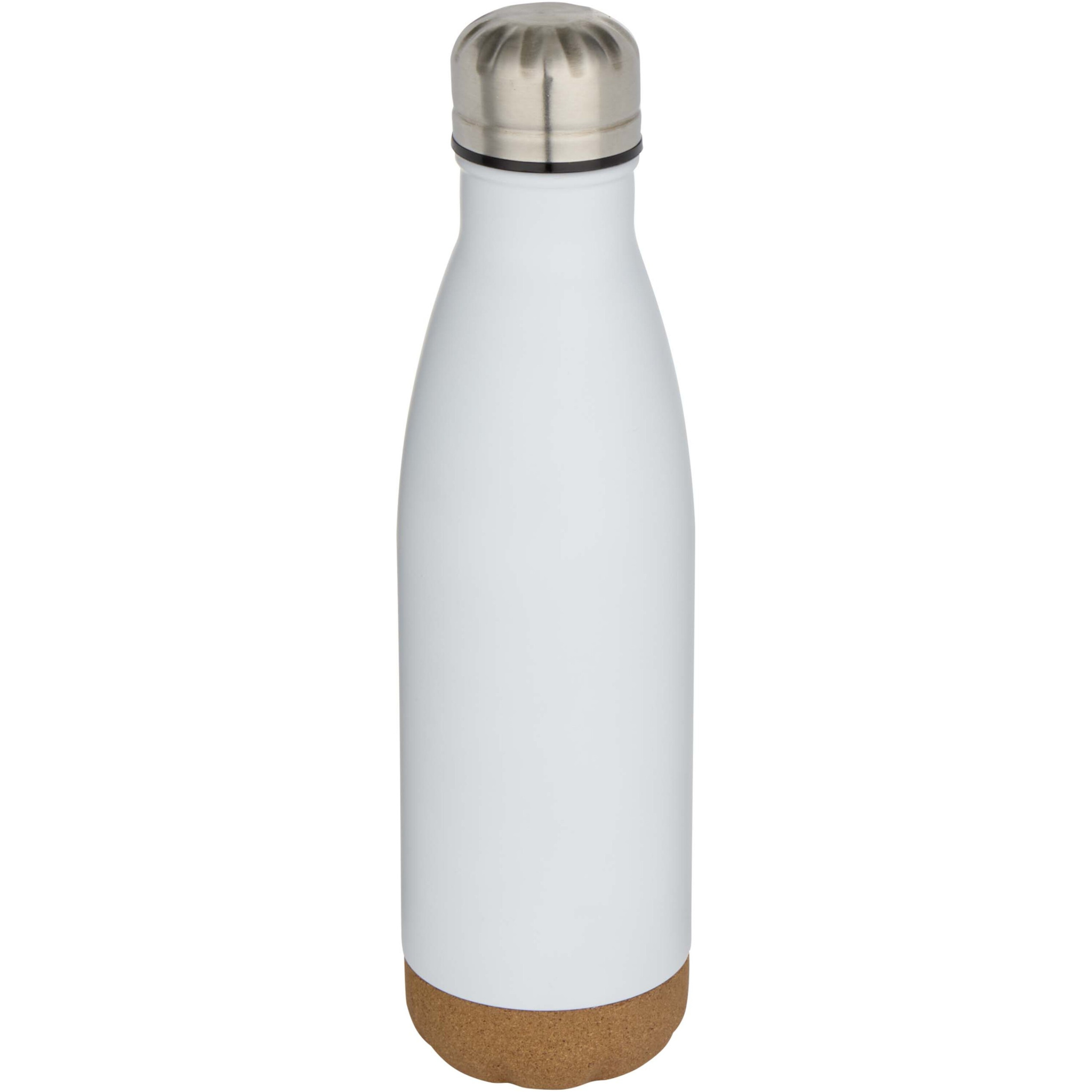 Vakuumisolierte Wasserflasche aus rostfreiem Stahl mit Korkdetails am Boden. Die doppelwandige Isolierung hält Getränke mehrere Stunden lang heiß oder kalt. Verpackt in einer Geschenkbox aus Recyclingkarton. Fassungsvermögen: 500 ml.