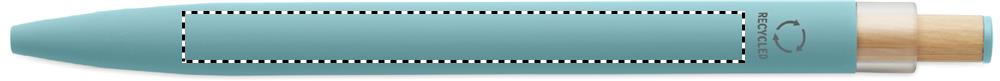 Druckkugelschreiber aus recyceltem Aluminium. Drücker mit Bambus, Clip aus Metall. Blaue Tinte.
