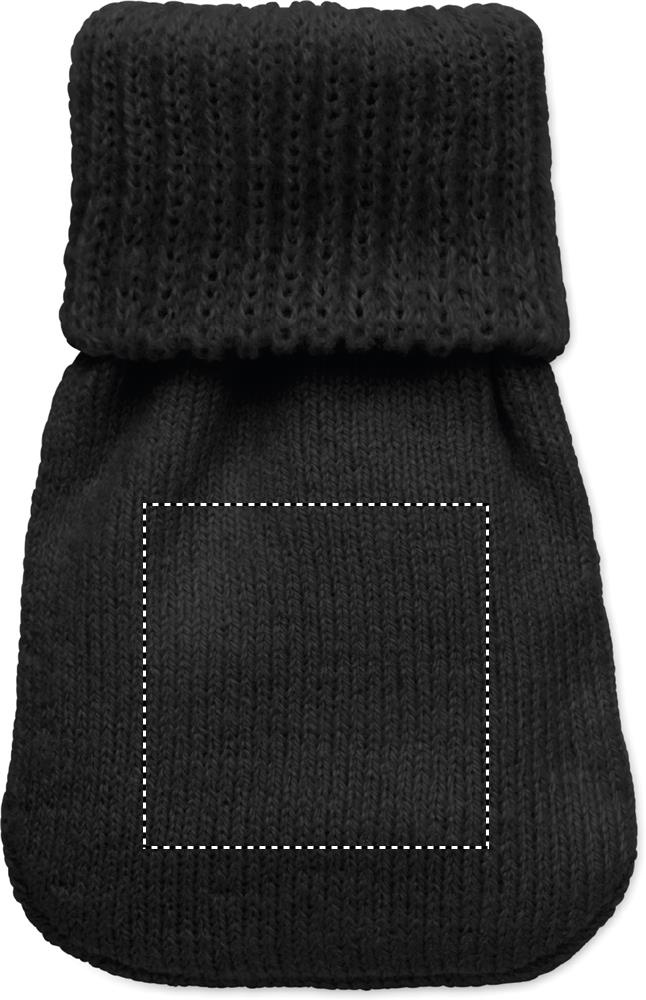 Gel-Hand-Wärmekissen mit gestricktem Bezug aus Polyester. Durch Drücken des Metallplättchens erhitzt sich das Kissen. Legen Sie es nach Gebrauch in heißes Wasser und es lässt sich nach kurzer Zeit erneut verwenden.