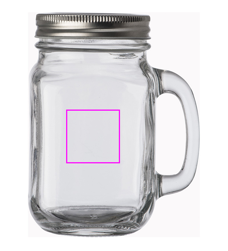 Glaskrug (450 ml) mit Schraubverschluss aus Metall und Loch für Strohhalm (Strohhalm nicht im Lieferumfang enthalten). Ihre Werbung wird per Laser in den Schraubverschluss eingraviert.