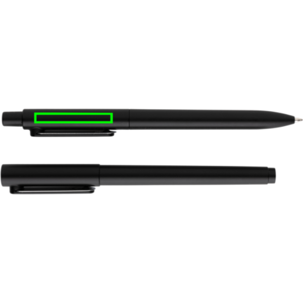 Dieses X6-Stifte-Set verfügt über ein einzigartiges Metallic-Finish mit schickem Metallclip-Design. Dieses Set besteht aus dem X6-Stift und seinem neuen Bruder dem X6-Stift mit Kappe. Der X6-Stift hat eine ca. 1200m blauschreibende Befüllung mit deutscher Dokumental®-Tinte und TC-Kugel für besonders flüssiges Schreiben. Der X6-Kappenstift enthält eine niedrigviskose Tinte, die für noch mehr Schreibkomfort sorgt. Diese niedrigviskose Tinte sorgt für mehr Tintenfluss als Tinten mit höherer Viskosität und führt so zu wahrhaft flüssigen Schwüngen auf dem Papier. 800m blauschreibend. Verpackt in einer farblich passenden Geschenkbox.