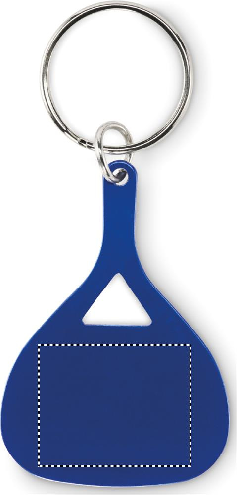 Recycled aluminium paddle-shaped keyring.