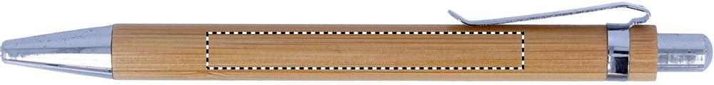 Bamboo barrel pen set which includes a stylus push button pen and a mechanical pencil presented in a paper box. Blue ink. Bamboo is a natural product, there may be slight variations in colour and size per item, which can affect the final decoration outcome.
