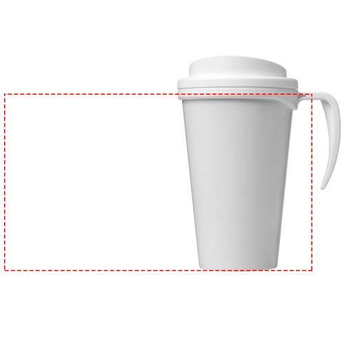 Double-wall insulated mug with twist-on lid and integrated handle. The outer layer of the mug is made from recycled plastic. Mug features a full colour wraparound design moulded to the product, making it long-lasting and durable. EN12875-1 compliant, dishwasher safe, and microwave safe. Volume capacity is 350 ml. Mug is fully recyclable. Mix and match colours to create your perfect mug. Contact customer service for additional colour options. Made in the UK. Presented in a white gift box. BPA-free.