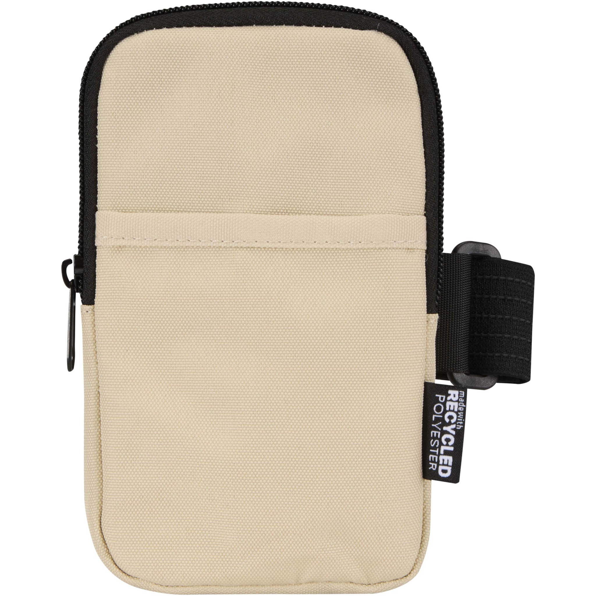 Crafted from water-repellent GRS-certified recycled polyester, the Byron bottle pouch securely attaches to your favourite water bottle or tumbler, keeping essentials close at hand while you stay hydrated. Featuring a strong hook-and-loop fastening and elastic webbing with anti-slip grips, it holds firmly to your drinkware. The zipped main compartment safely stores valuables, including most smartphones, while the front slip pocket offers quick access to smaller items such as bank cards, ID or keys. Ideal for the gym or outdoor adventures, the Byron pouch frees up your pockets and keeps you organised, all while supporting more sustainable materials.