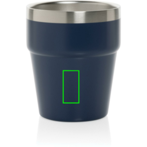 Double wall steel cup, perfect for the coffee machine. Made from 100% RCS certified steel. RCS certification ensures a completely certified supply chain of the recycled materials. Hand wash only. Total recycled content: 100% based on total item weight. BPA free. Capacity 300ml. Including FSC®-certified kraft gift packaging.