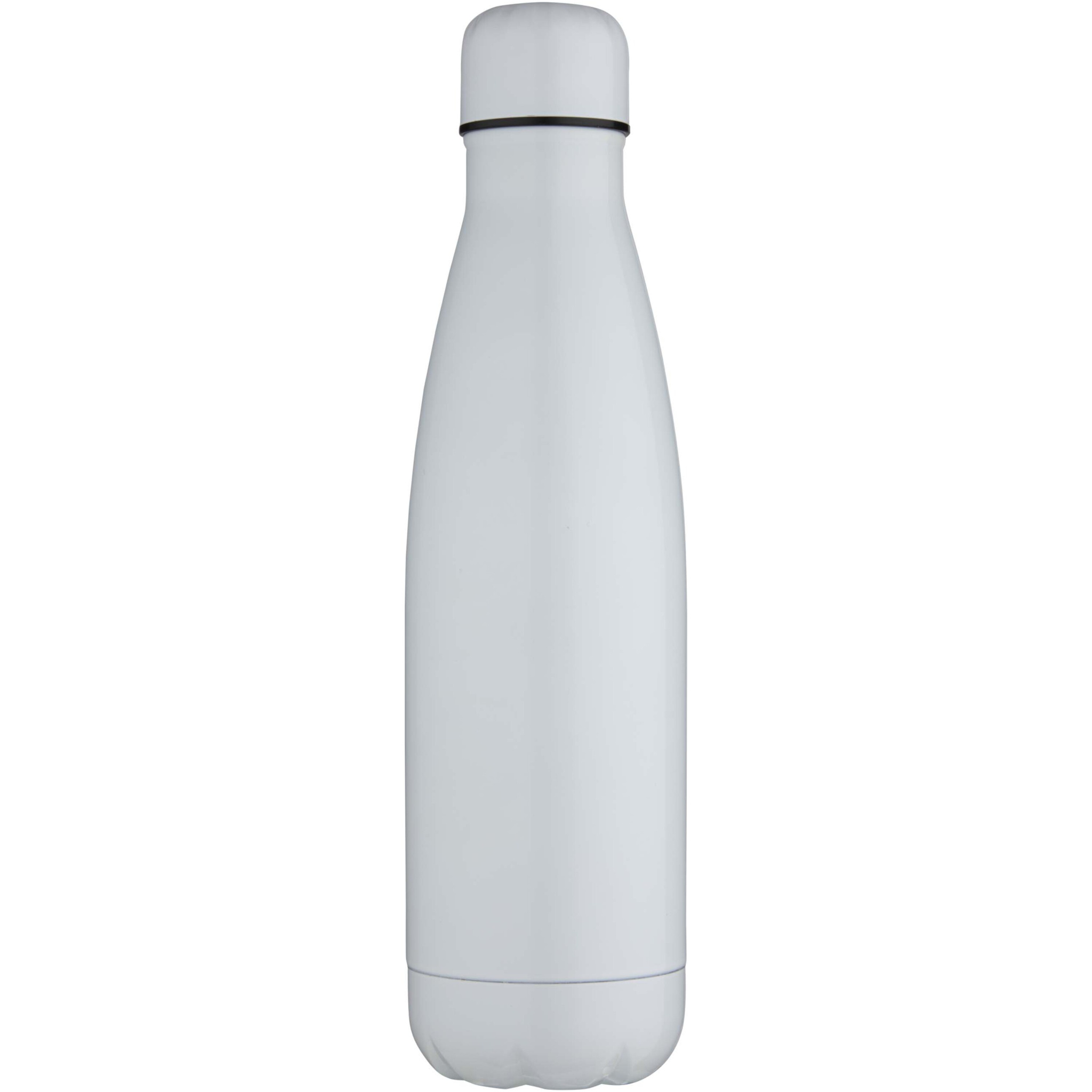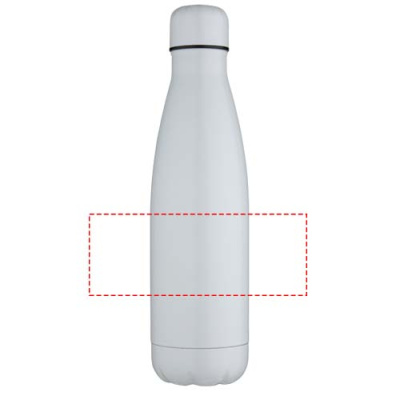Double walled, vacuum insulated stainless steel bottle with a special coating on the exterior that allows for sublimation printing. The insulated stainless steel keeps drinks hot or cold for several hours. Featuring a base that fits in most cup holders. Shiny finish. Presented in a recycled cardboard gift box. Volume capacity: 500 ml.