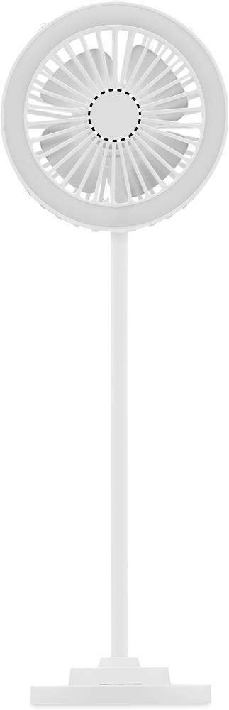 ABS Desktop fan with 3 speed settings with LED light (80 lumens) and 10W wireless charger. Output: DC 9V/1.1A (10W) for quick charging. Compatible with latest Androids, iPhone® 8 and newer.