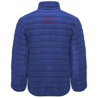 Men's quilted jacket with feather touch padding. Inverted zippers with matching chin protector and puller. Two front pockets with zippers. Matching elastic edging in collar, cuffs and hem. Contrasting inner lining. Includes stow carry bag. Lightweight and foldable garment. Removable label. Water resistant. Wind-proof. The model is 184 cm and is wearing size L.
