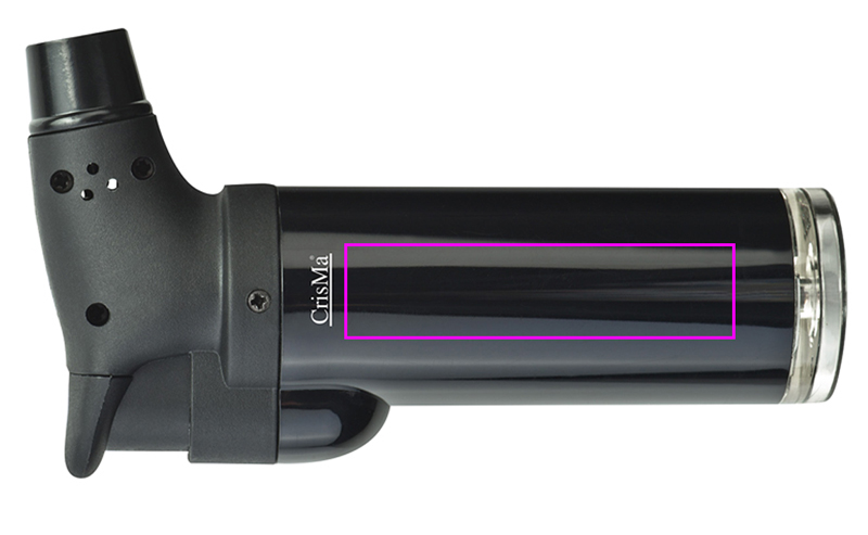 Refillable `creme brulee` torch with regulabe flame size and kids security. We will print your logo onto the shaft.