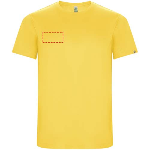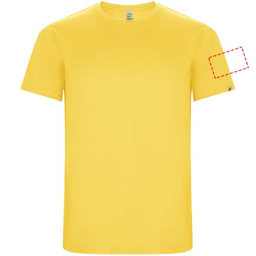 Technical short-sleeve t-shirt in recycled CONTROL-DRY polyester. Crew neck with matching covered seams. ECO logo label on sleeve. Packing in recycled material. Removable ECO label. Packing in recycled material. Technical fabric. The model is 115 cm and is wearing size 5/6.