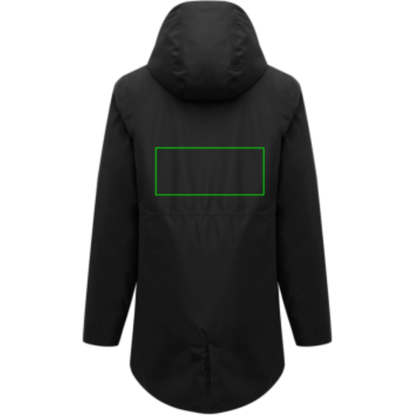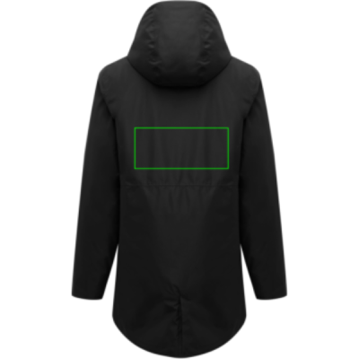 Unisex padded waterproof parka, made from 100% recycled polyester. The jacket is 3.000 mm waterproof, breathable and wind resistant. It has all features of a classic parka: longer back length, back slit, 2-way CF reversed zipper, covered by an extra front placket with four hidden snaps, clean sleeve cuffs with an extra inside half cuff, hood with stoppers at inside collar, horizontal deco seams. It is padded with 100% recycled polyester sheets and is lined with fine taffeta. On the inside there is a hidden zip at bottom hem and left wearer’s chest for easy decoration. Full garment is stitched with recycled polyester sewing thread. At back neck there is a tear-off size label with an iqoniq craft hangtag, care label at the left inside side seam. The use of genuine recycled fabric material and environmental impact claims are guaranteed, by using the AWARE™ disruptive physical tracer and blockchain technology. By scanning the QR code, you will gain access to a dedicated digital passport.