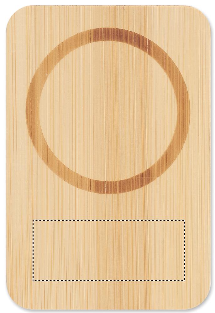 Magnetic bamboo wireless charger (10W) and power Bank (4000 mAh). Output: DC 9V/1.1A (10W) ideal for quick charging. Compatible with iPhone® 12 and newer. Including additional magnetic metal ring to support charging of other non-magnetic wireless chargeable phones. Bamboo is a natural product, there may be slight variations in colour and size per item, which can affect the final decoration outcome.