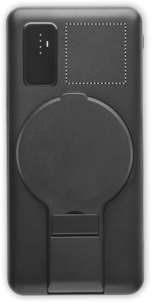 Magnetic wireless charger (15W), power bank (10000 mAh) in ABS and magnetic phone stand functionality. Input: micro B, Type-C . Output 2x USB-A  In/ Type-C/ DC 9V/1.66A (15W) ideal for quick charging. Compatible with iPhone® 12 and newer. Includes additional magnetic metal ring to support charging of non-magnetic wireless chargeable phones. Power delivery (PD) support to charge the newest laptop MacPro®.