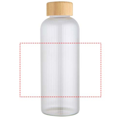 Borosilicate glass bottle with a bamboo lid. The bottle has a unique ribbed design on the interior and a smooth exterior, ideal for printing a logo. The bamboo used is sourced sustainably, with respect for environmental and social responsibility. Supplied in a recycled cardboard gift box. Volume capacity: 650 ml.