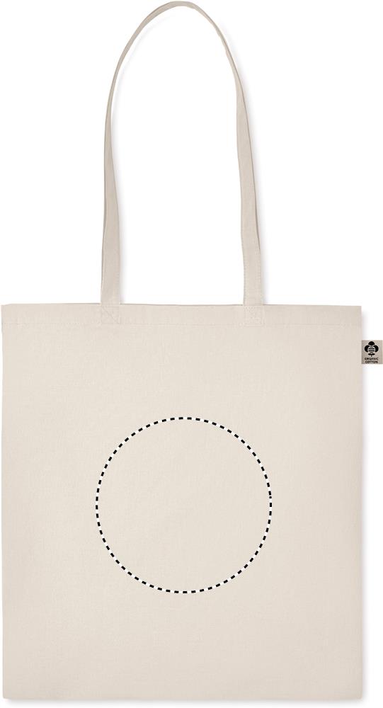 Organic cotton shopping bag with long handles. A classic tote bag design made to carry your daily groceries or other items. Carry the bag in your hands or over your shoulder with the long handles. Made from 100% natural organic cotton 140 gr/m².