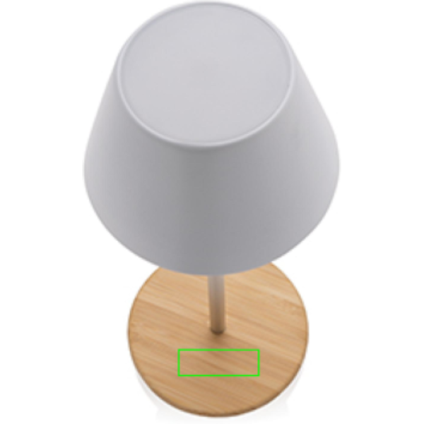 Luxury table lamp made with RCS certified recycled ABS plastic, recycled aluminum and FSC certified 100% bamboo . Total recycled content: 40% based on total item weight. RCS certification ensures a completely certified supply chain of the recycled materials. The table lamp will operate up 18 hours on one single charge and can be re-charged in 2 hours. With a-grade 1800 mAh battery and type C input ( 5V/1A) With two modes (warm light and white light) that can be adjusted by touch sensor in the base. Rechargeable via USB-C. Packed in FSC® mix packaging. IPX 4 waterproof.