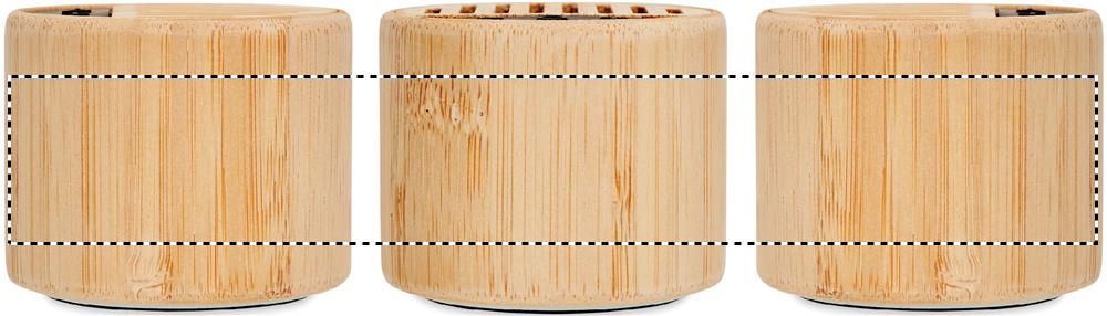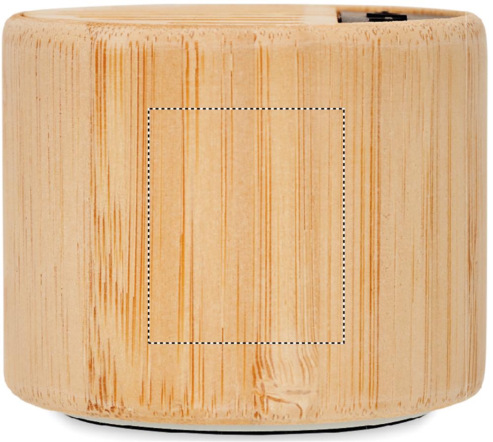 5.3 wireless speaker in ABS with bamboo casing and LED light indication. 1 Rechargeable Lithium 300 mAh battery included. Output data: 3W, 4 Ohm and 5V. Playing time approx.. 4h. Bamboo is a natural product, there may be slight variations in colour and size per item, which can affect the final decoration outcome.