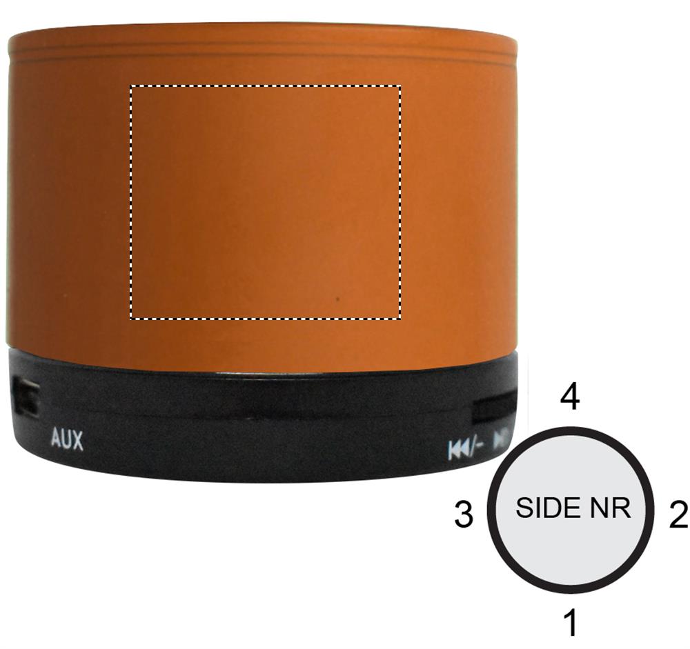 5.1 wireless speaker in ABS with rubber finish and LED light indication. 1 Rechargeable Lithium 450 mAh battery included. Includes an SD card port and an AUX / USB cable. Hands free call function. Output data: 3W, 3 Ohm and 5V. Playing time approx. 3h.