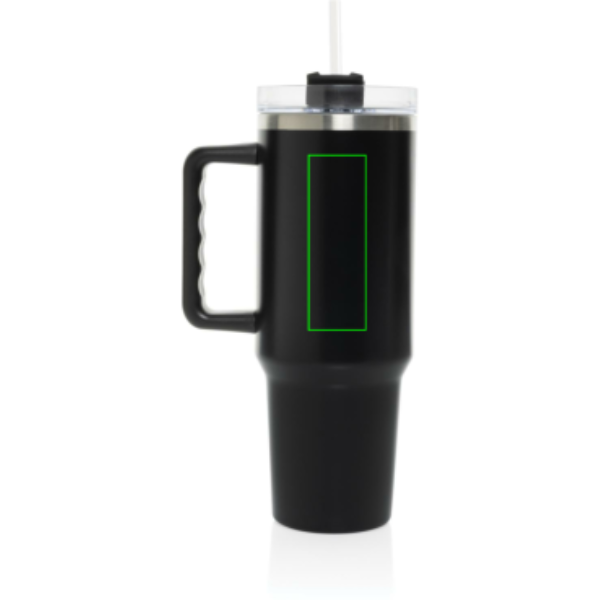 Meet Stadley, the ultimate 1200 ml tumbler designed for those who need a little extra. Its comfort-grip handle and slim base make it easy to carry and fit into most cup holders, keeping you hydrated on the go. Outside made from durable recycled stainless steel, Stadley’s double-walled, vacuum-insulated body keeps drinks at the perfect temperature. It features a spill-proof lid with a dual function for sipping or using the included recycled steel straw with a silicone tip. RCS-certified, with 29% recycled content, and BPA-free. Perfectly practical and lower impact, we recommend handwashing.Bulk packed.