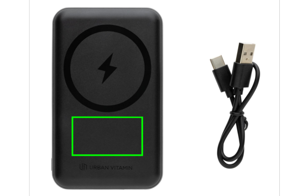 Charge your phone up to 2.5 times with this fast charging powerbank. The slim and compact powerbank has an integrated fast 10W wireless magnetic charger. Features a versatile built-in foldable kickstand that keeps your phone upright for a comfortable viewing angle. Thanks to the ultra fast type C PD port, the powerbank re-charges in record time. Charging your phone up to 50% takes only 30 minutes. Slow charging is something from the past. The powerbank contains a long lasting A-grade 10.000 mah battery to charge all your devices on your travels and adventures. The double output A and type C port allow you to charge up to 2 devices at the same time. Made with RCS (Recycled Claim Standard) certified recycled ABS Total recycled content: 16 % based on total item weight. RCS certification ensures a completely certified supply chain of the recycled materials. Urban Vitamin items are made without PVC and packed in plastic reduced packaging. USB :5V 3.0A Type C : 5V 3.0A,9V 2.22A, 12V 1.5A .