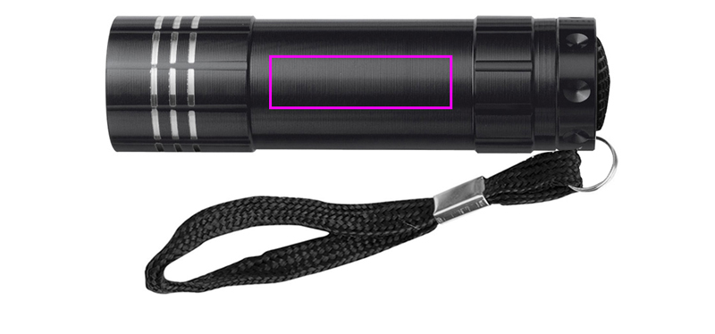COB alumiiniumist taskulamp kuue COB-ga. Kanname teie logo keskosale lasergraveeringuga. Välja arvatud kolm AAA patareid (tellige need kohe, vt viimast lehekülge või artiklit 999400).