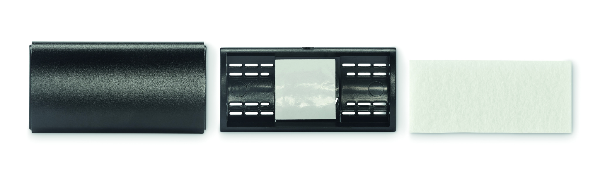 Auto õhuvärskendaja alumiiniumkatte ja ABS-klambriga. Komplektis RPET-vildist sisetükk aroomivedeliku jaoks (ei kuulu komplekti).