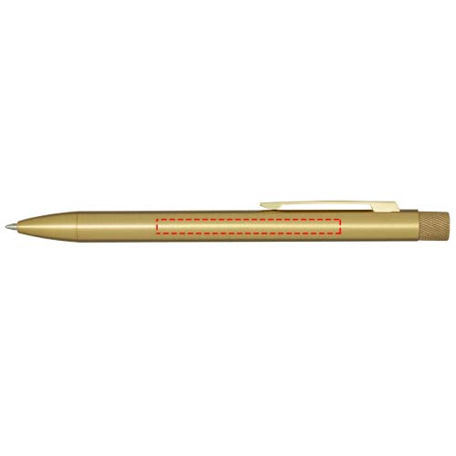 Värvilise pihustuskattega pastapliiats. Nupp ja ots on valmistatud messingist, silinder on valmistatud taaskasutatud messingist ja klamber on valmistatud rauast. Tindi värvus: sinine. Kirjutamise pikkus: 1000 meetrit. Otsa suurus: 1,0 mm. Tarnitakse kinkekarbis.
