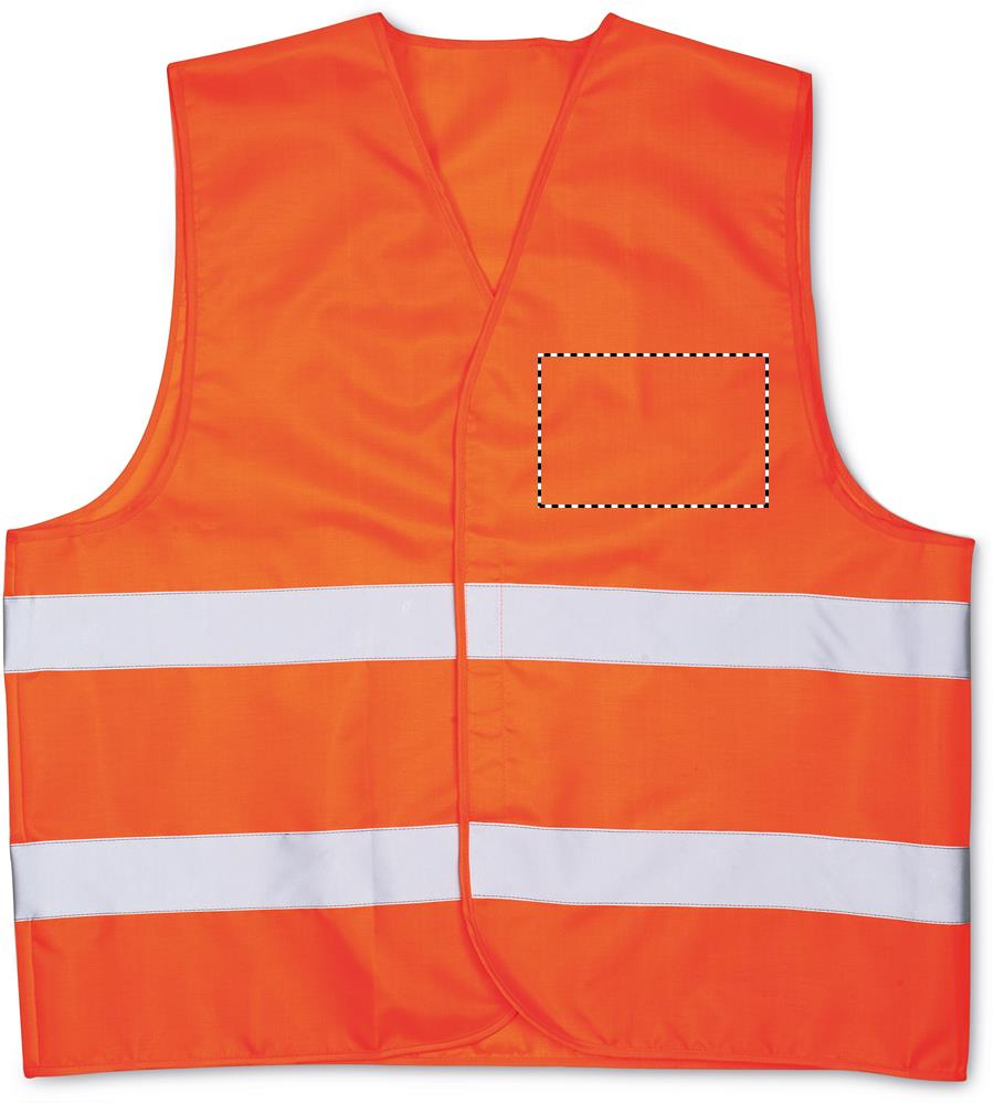Turvavest, mis on valmistatud 100% kootud polüestrist Class2 hästi nähtava helkurteibiga. EN ISO 20471.