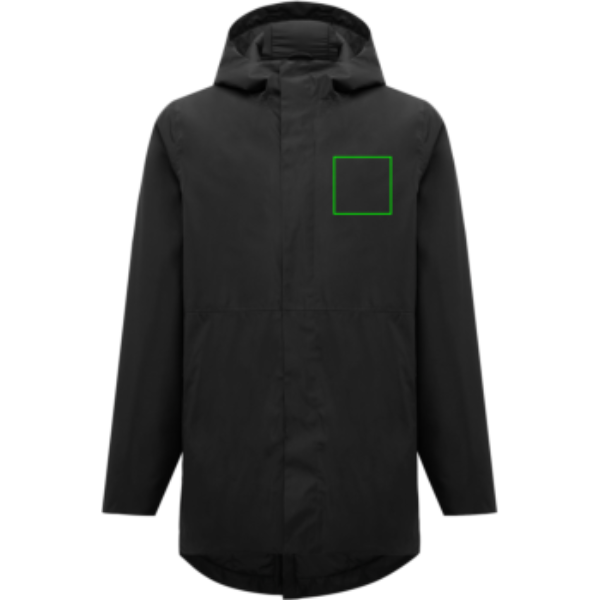 Unisex polsterdusega veekindel parka, valmistatud 100% taaskasutatud polüestrist. Jakk on 3000 mm veekindel, hingav ja tuulekindel. Sellel on kõik klassikalise parka omadused: pikem seljaosa, tagumine lõhik, kahesuunaline CF-pöördtõmblukk, kaetud lisa-eesmise nööbiga nelja peidetud trukiga, puhtad varrukamansetid lisa sisemise poolmansetiga, kapuuts stopperitega krae siseküljel, horisontaalsed dekoratiivõmblused. See on polsterdatud 100% taaskasutatud polüesterlehtedega ja vooderdatud peene taftiga. Siseküljel on peidetud lukk allääres. Kogu rõivas on õmmeldud taaskasutatud polüesterõmblusniidiga.