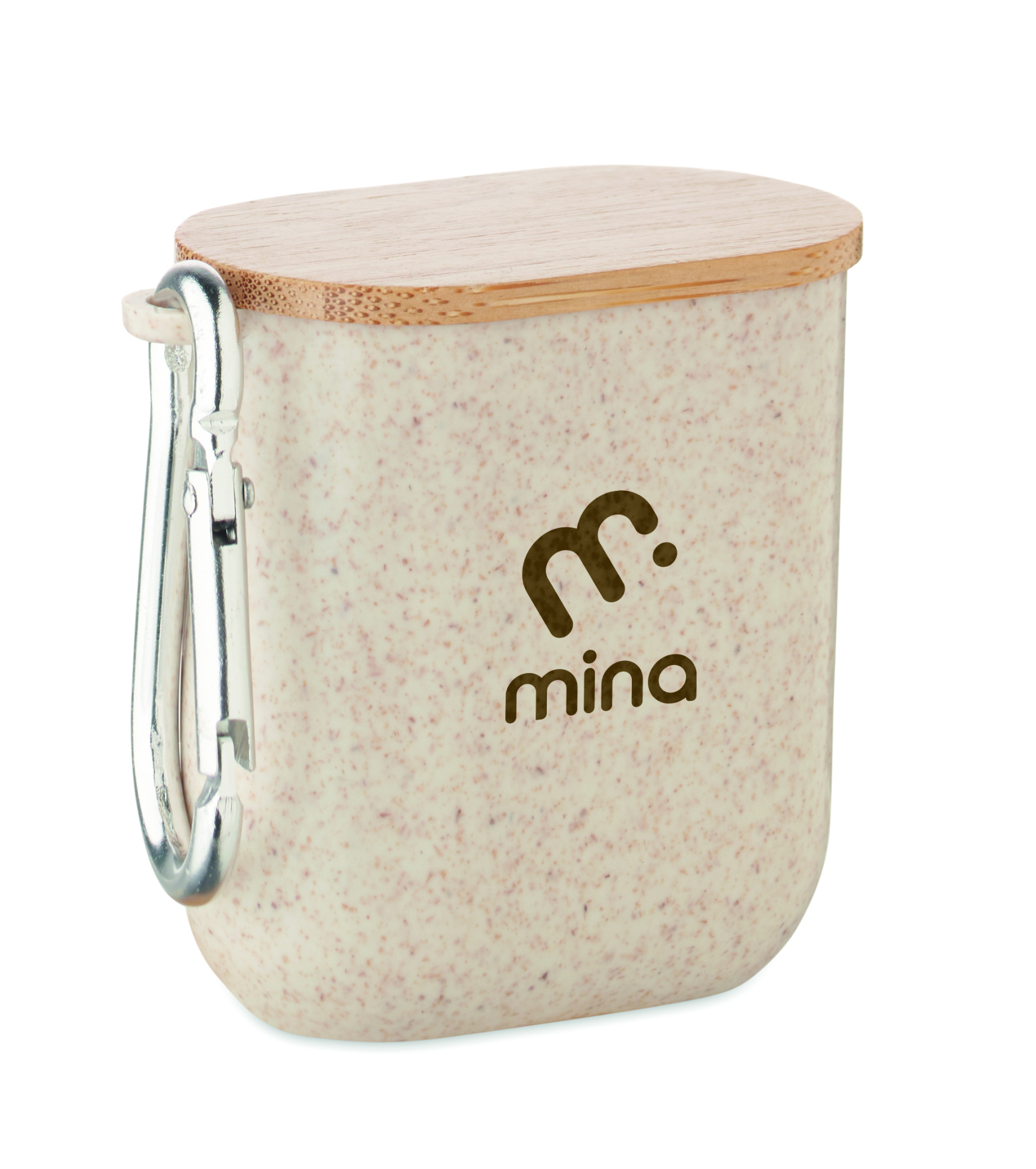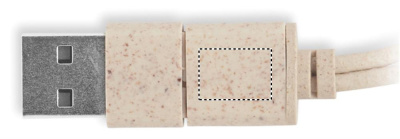 Nisuõlgedest/ABS-ist korpuses kaablikomplekt bambusest kaane ja karabiiniga. Kaas toimib telefonialusena (horisontaalses asendis). Kaabli sisend 2in1 USB-C/A, väljund Type-C ja 2in1 kontaktiga.