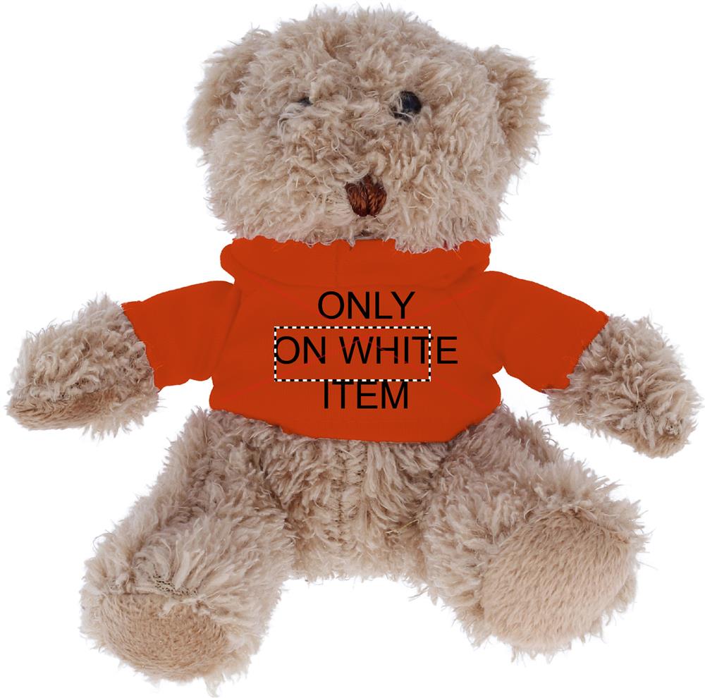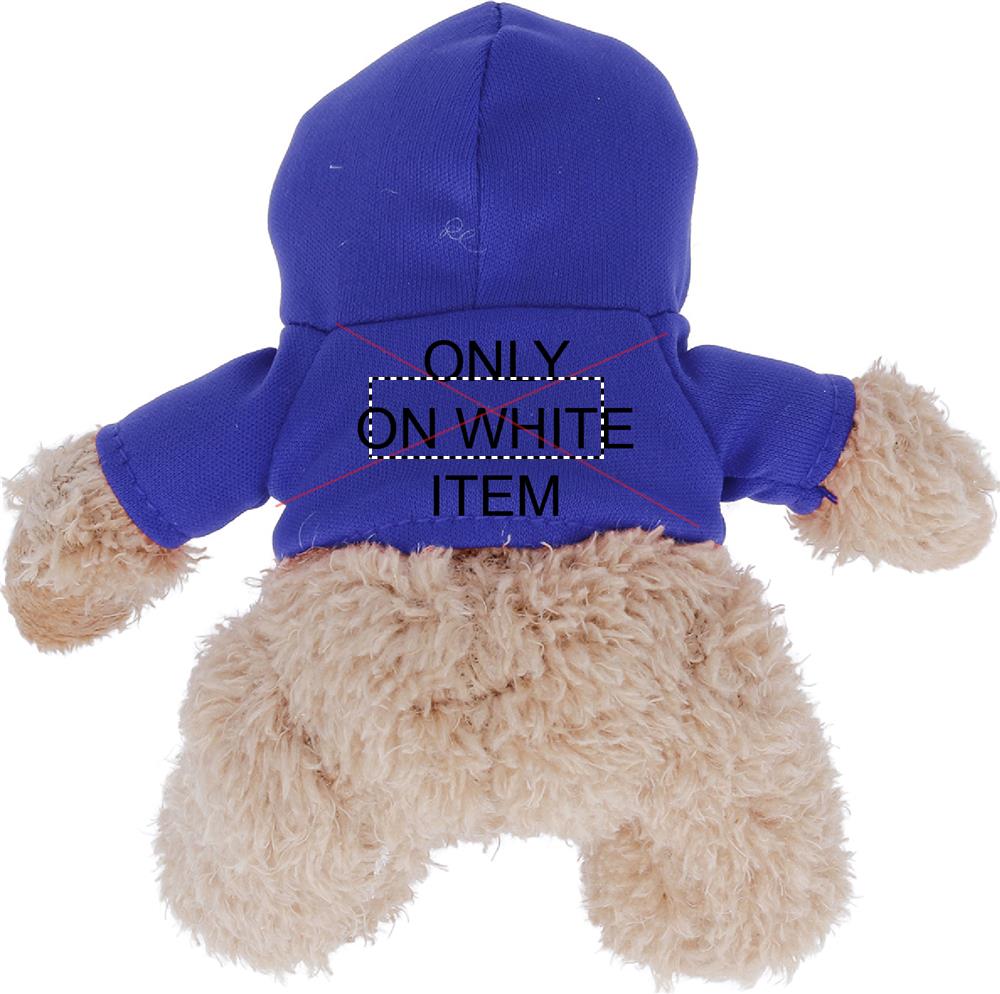 Kaisukaru plüüs kannab kapuutsiga kampsunit. Sublimatsioontrükk on saadaval ainult valgele esemele.