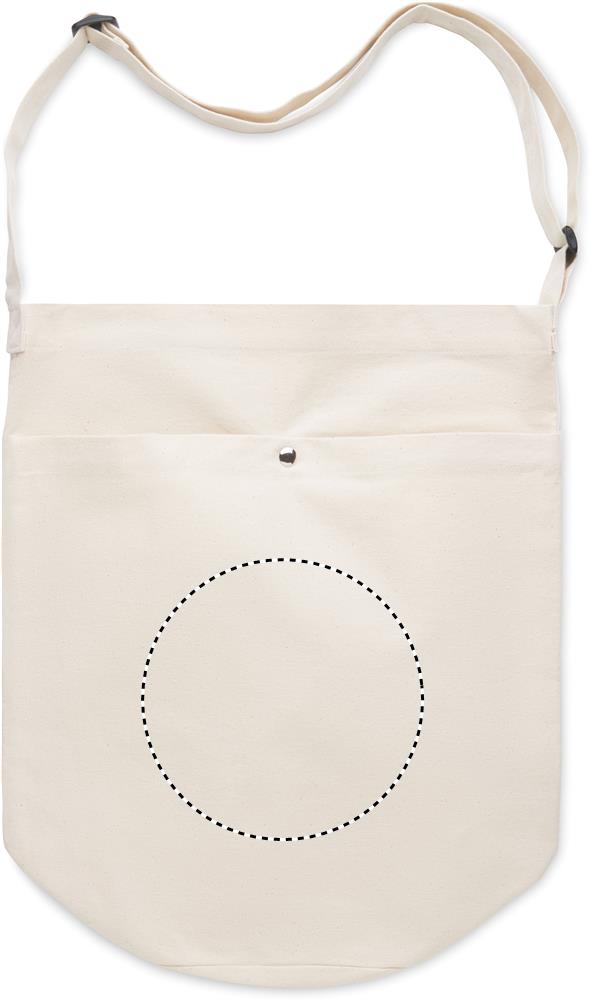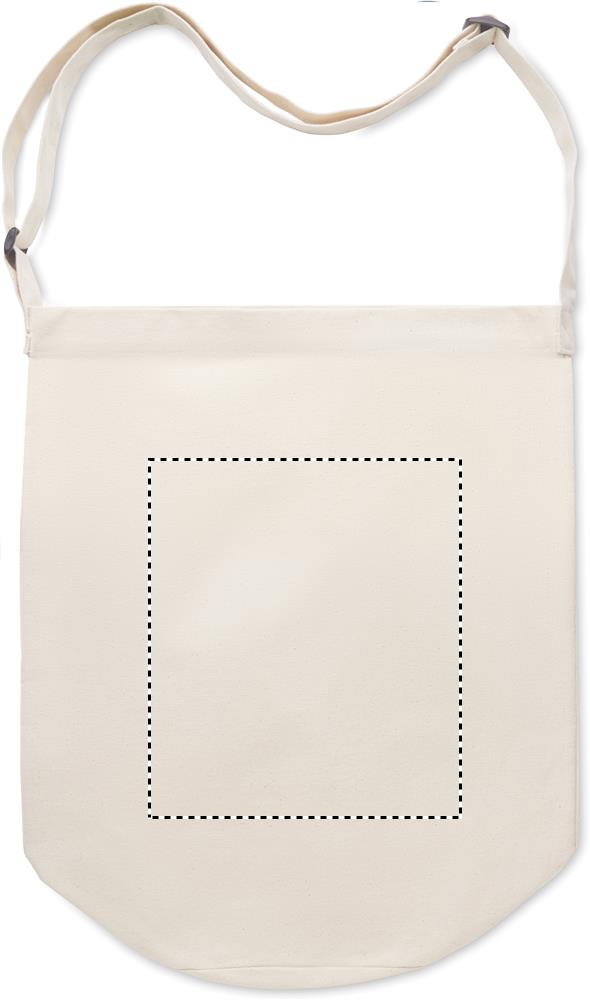 Lõuendist kott pika reguleeritava risti õlarihma ja suure krõpskinnitusega esitaskuga. Kaasas sisetasku. 270 gr/m².