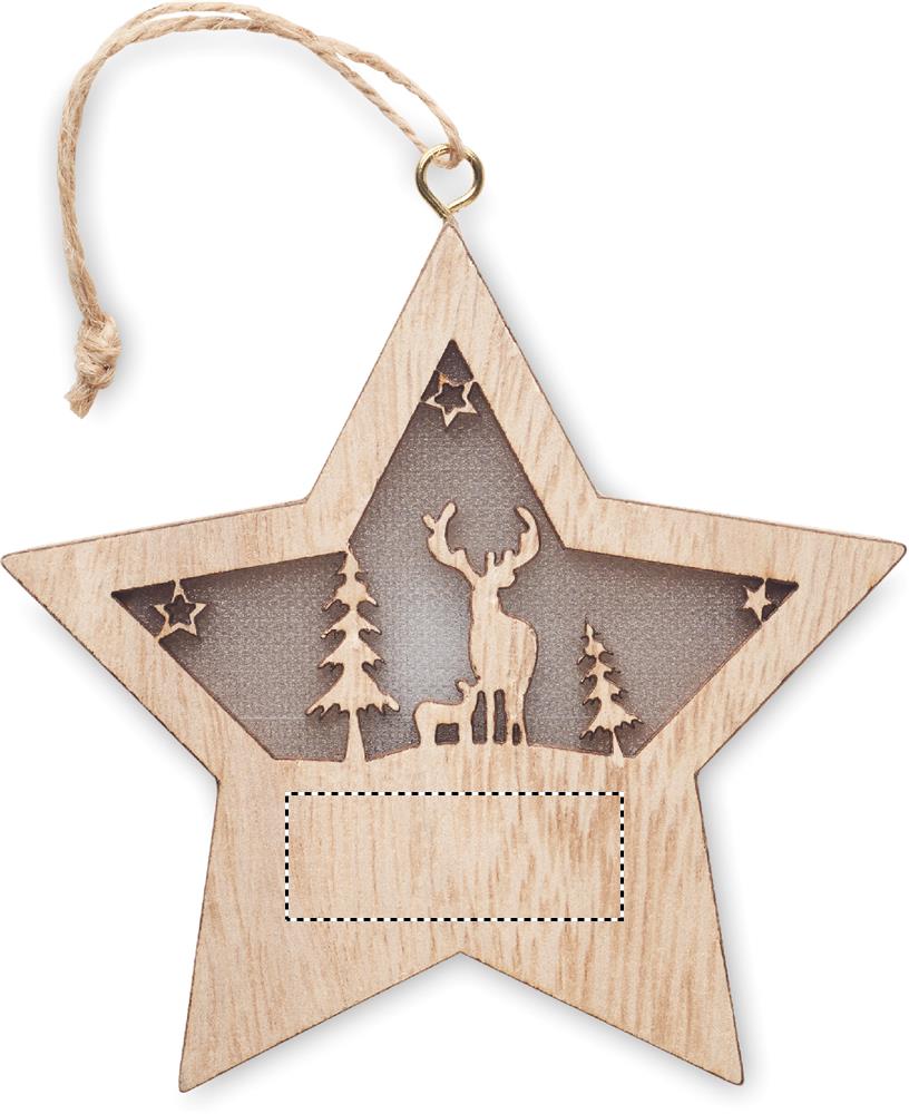 MDF-kaunistusega täht, mille sees on valgus, jõuluehete ja riputusnööriga. Kaasas 3 LR44 patareid.