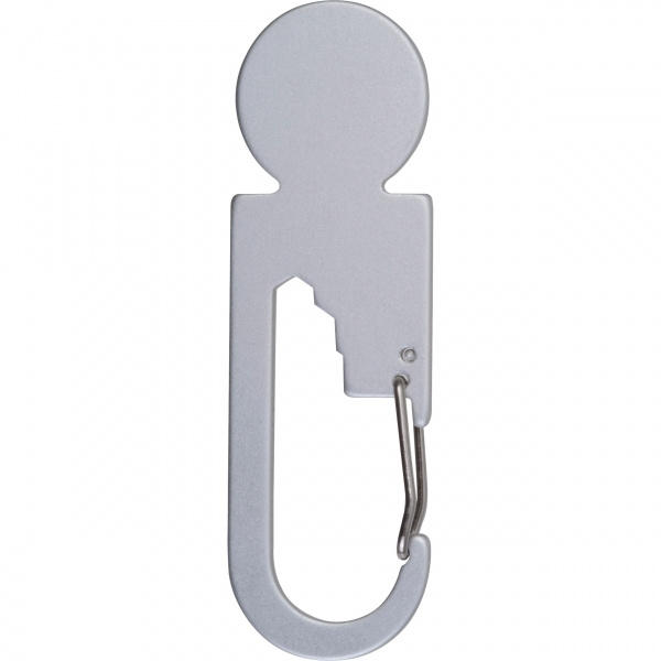 Alumiiniumist multitööriist, millel on ostukäru vabastusmehhanism, kolm erineva suurusega kuuskantvõtit ja karabiin. Teie logo kantakse ostukäru vabastusmehhanismile lasergraveerimise teel.