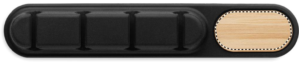 Silikoonist kaablikorraldaja naturaalse bambusdetailiga. Kompaktne ovaalne disain hoiab juhtmed korras.