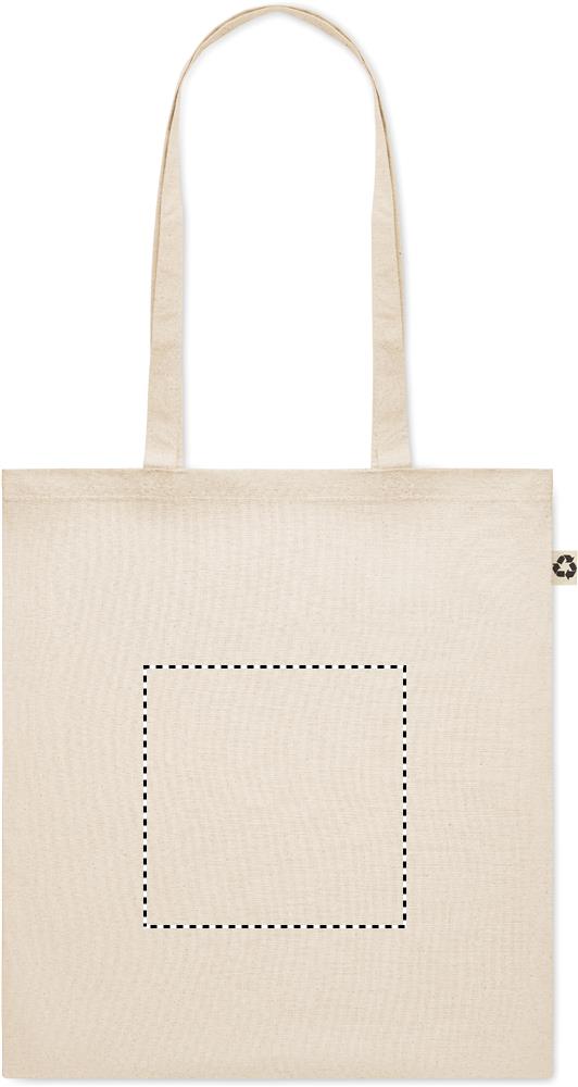 Tarbimisjärgsest taaskasutatud puuvillasest ostukott (65% taaskasutatud puuvill, 35% tavaline puuvill) pikkade sangadega. 140 gr/m².