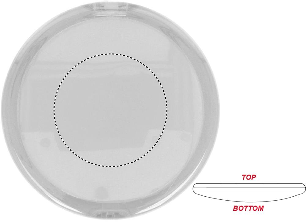 Läbipaistvates värvides ümar kahepoolne kompaktne peegel.