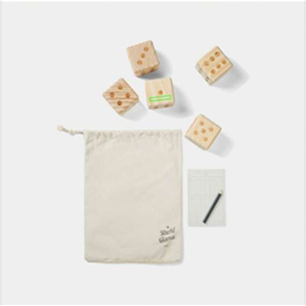 Välijahimäng on klassikaline täringumäng, mis sobib suurepäraselt toredateks õuepäevadeks. Mängu eesmärk on erinevatel viisidel täringut veeretades ja kombineerides saada võimalikult kõrge punktisumma. Mängu on lihtne õppida ja seda saavad mängida igas vanuses inimesed. Kaasas on 5 täringut, mõõtmetega 7x7x7cm, märkmik ja pliiats. Pakitud puuvillasesse kotti. Kaasas kasutusjuhend. Kõik puitosad on valmistatud kvaliteetsest FSC®-sertifikaadiga männipuidust, mis tagab puidu vastutustundlikult majandatud metsadest.