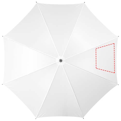 23" sateevarjo, jossa puukahva ja runko sekä metalliruoteet.
