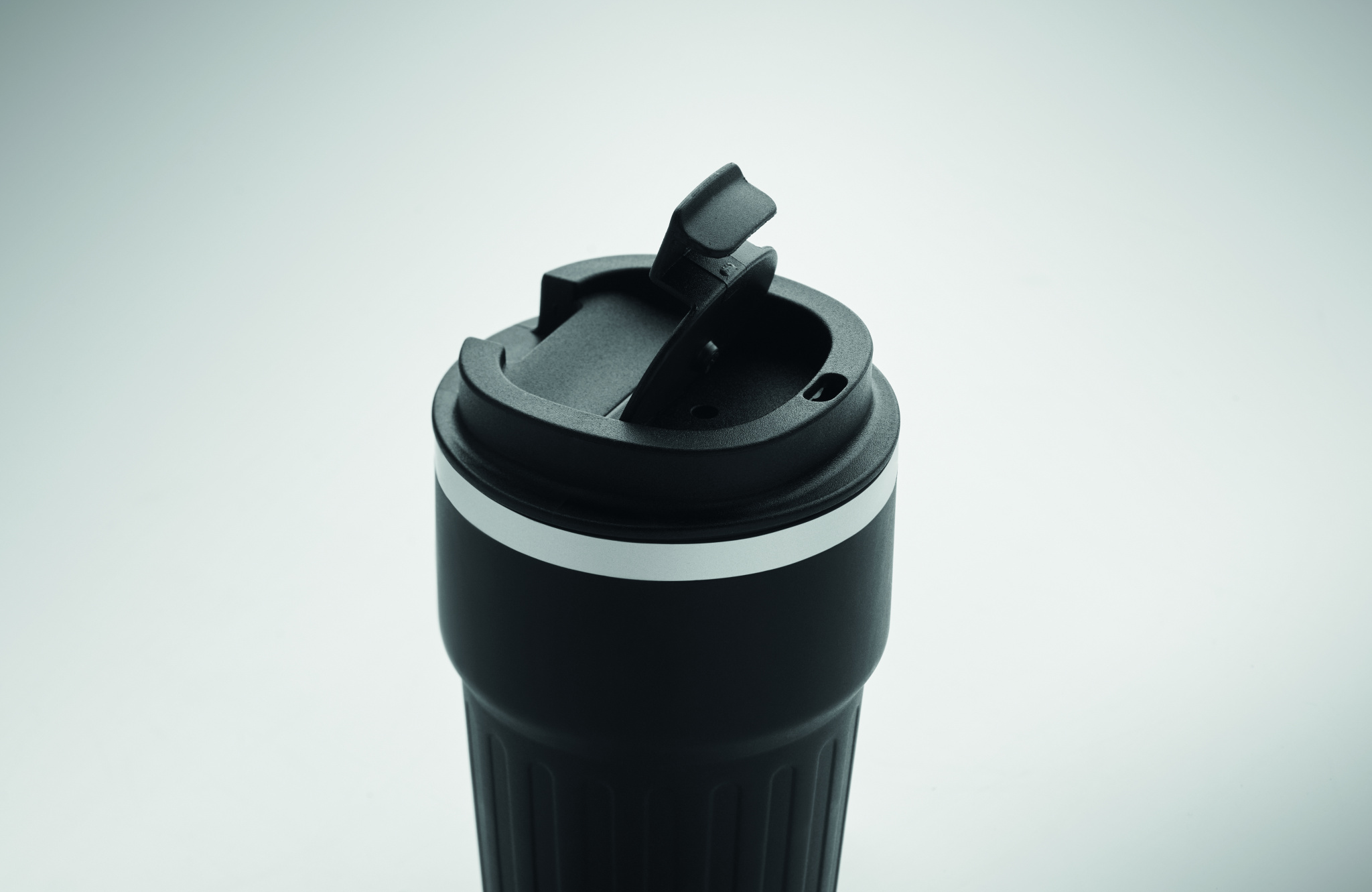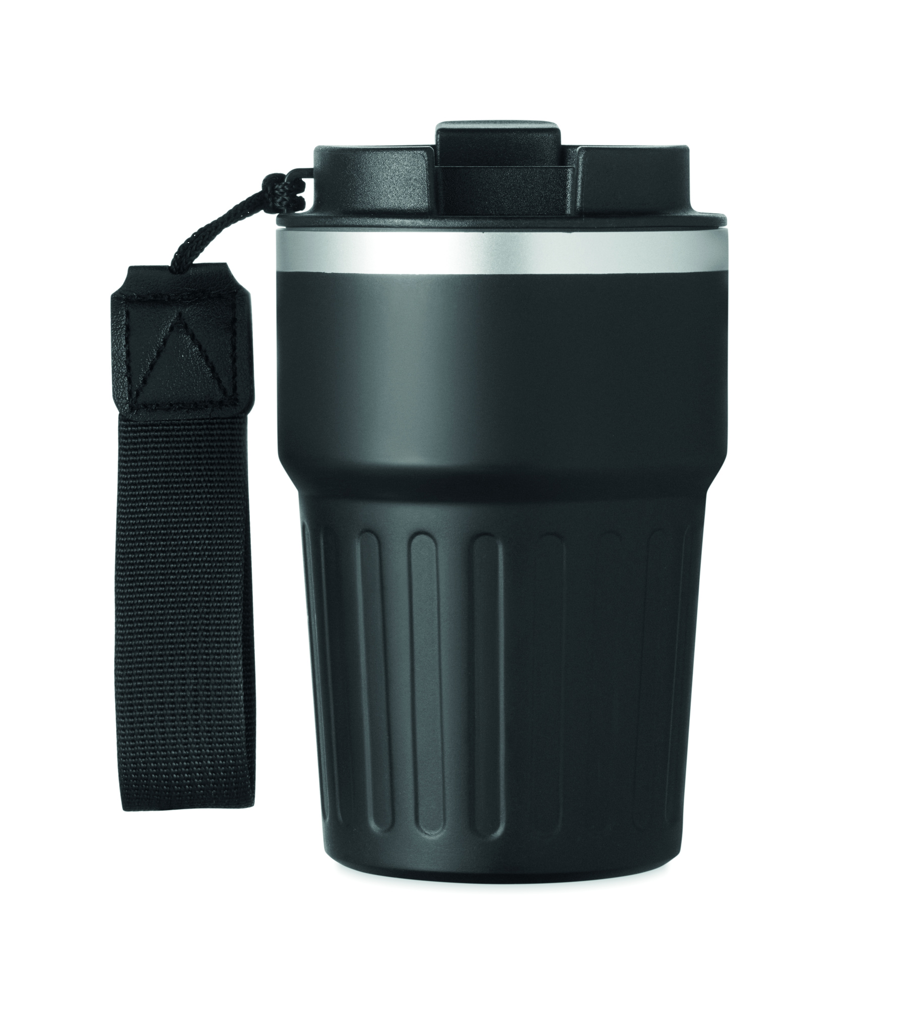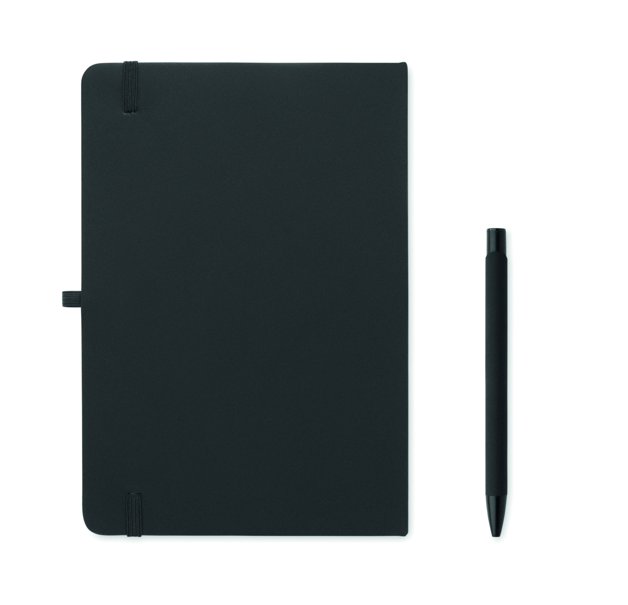A5-muistikirja, kierrätysalumiinista valmistettu kuulakärkikynä ja 350 ml:n kaksiseinäinen kierrätetty ruostumattomasta teräksestä valmistettu juomamuki, jossa on PP-kansi ja hihna. Lahjapakkauksessa.