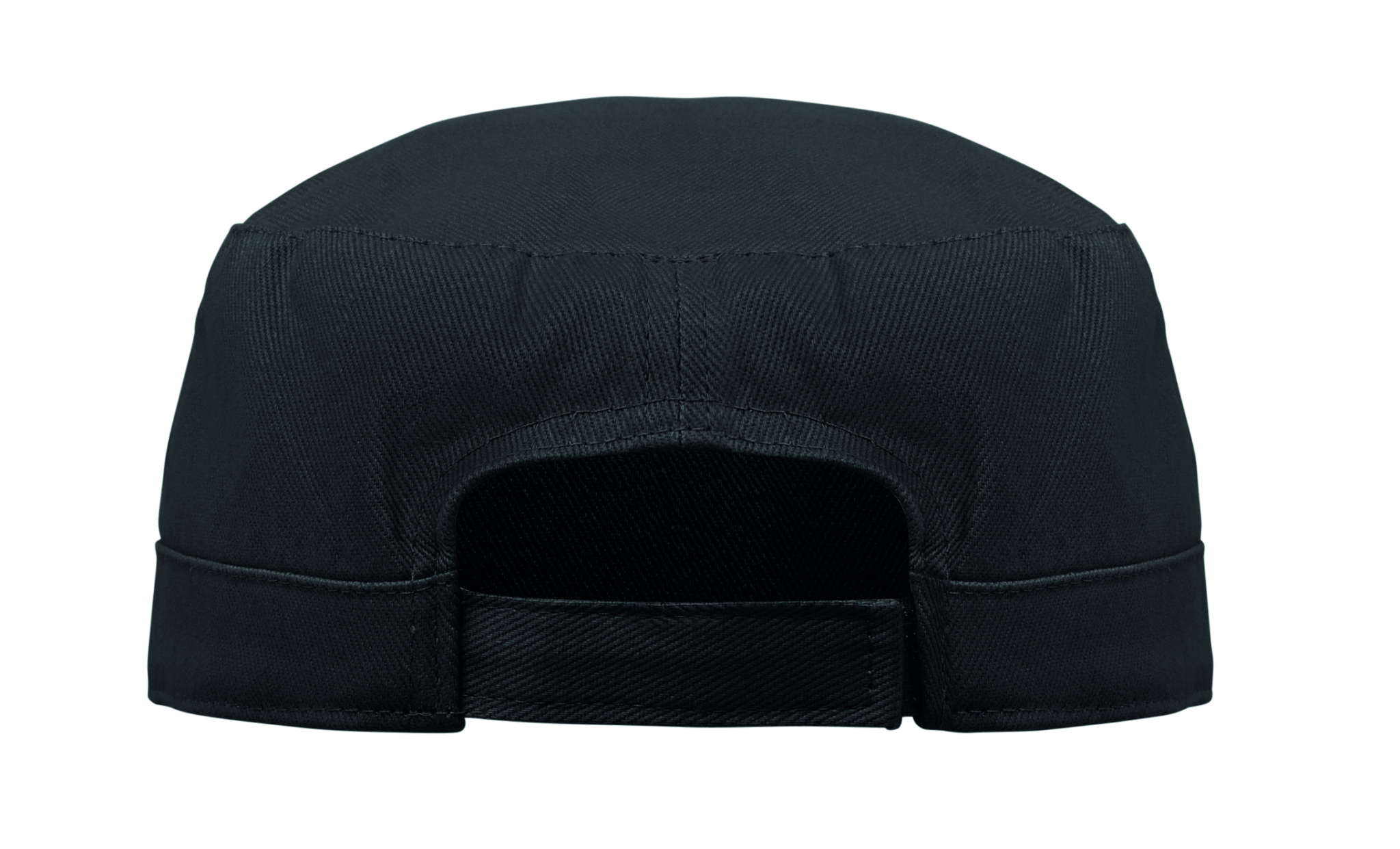 Armylippis 260 g/m² harjattua puuvillaa, polyesterihikinauhalla ja säädettävällä tarranauhakiinnityksellä.