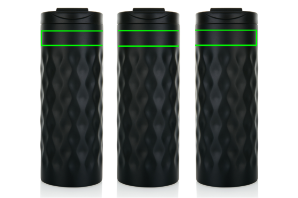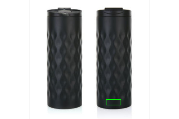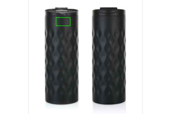 Juomamuki ruostumatonta terästä, kaksoisseinämä. Koristeltu trendikkäällä geometrisellä kuviolla. Kapasiteetti 350 ml.