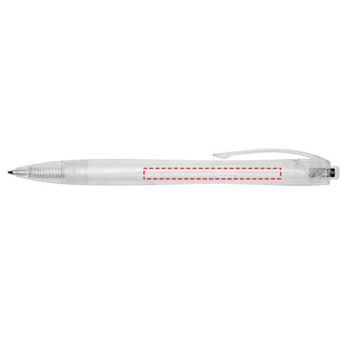 Neitsytmuovin käyttöä vähentävästä kierrätetystä RPET-muovista valmistettu napsautettava kuulakärkikynä. Kuulakärkikynässä on läpinäkyvä runko ja värillinen painike. Sininen muste, voidaan yhdistää 107763 Honua RPET -muistion kanssa.