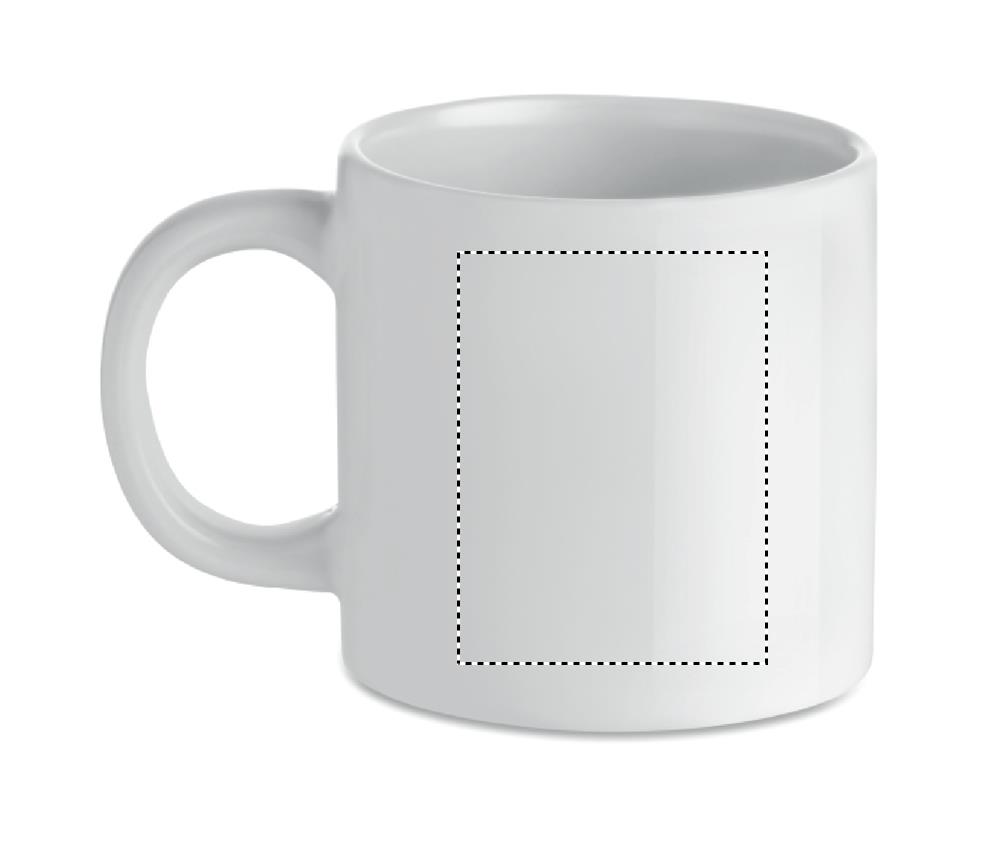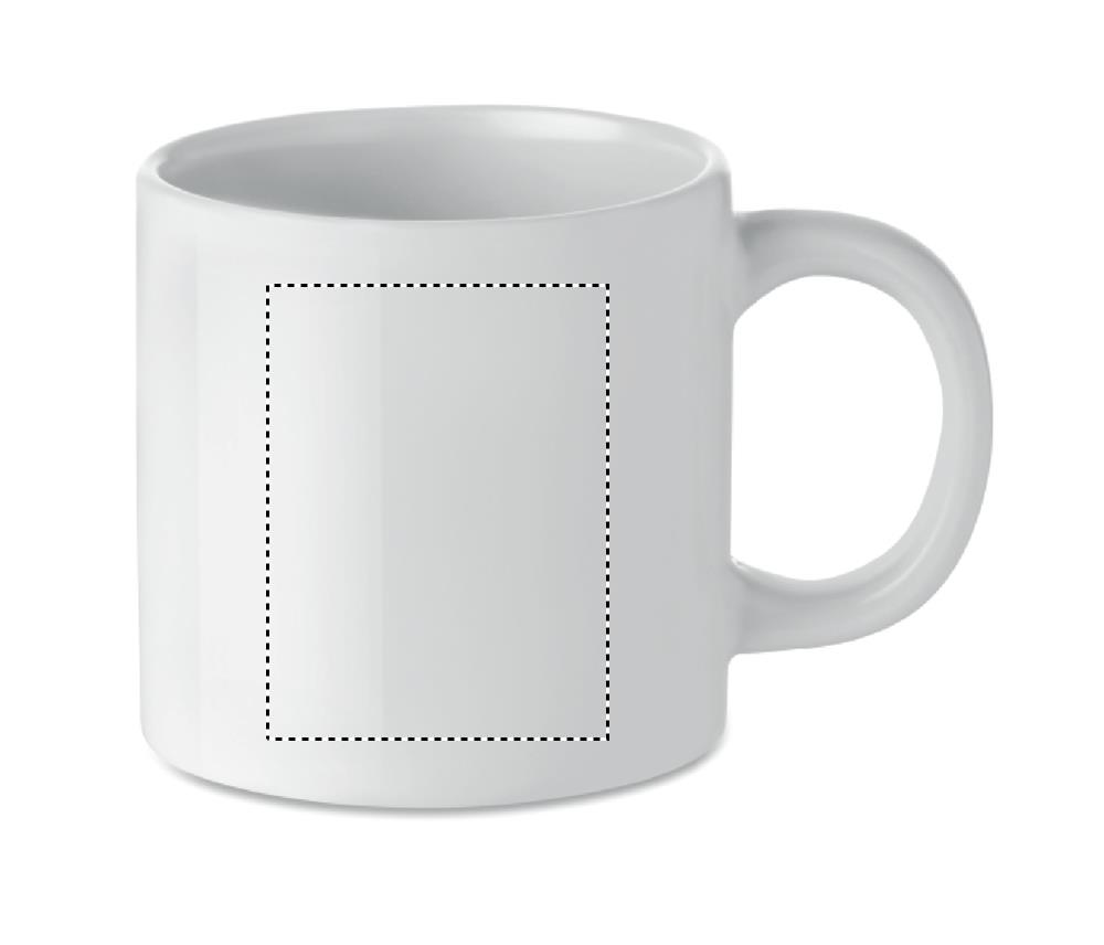 Keraaminen muki 200 ml, erikoispinnoite sublimaatiota varten. Yksittäispakkaus valkoisessa pahvilaatikossa.