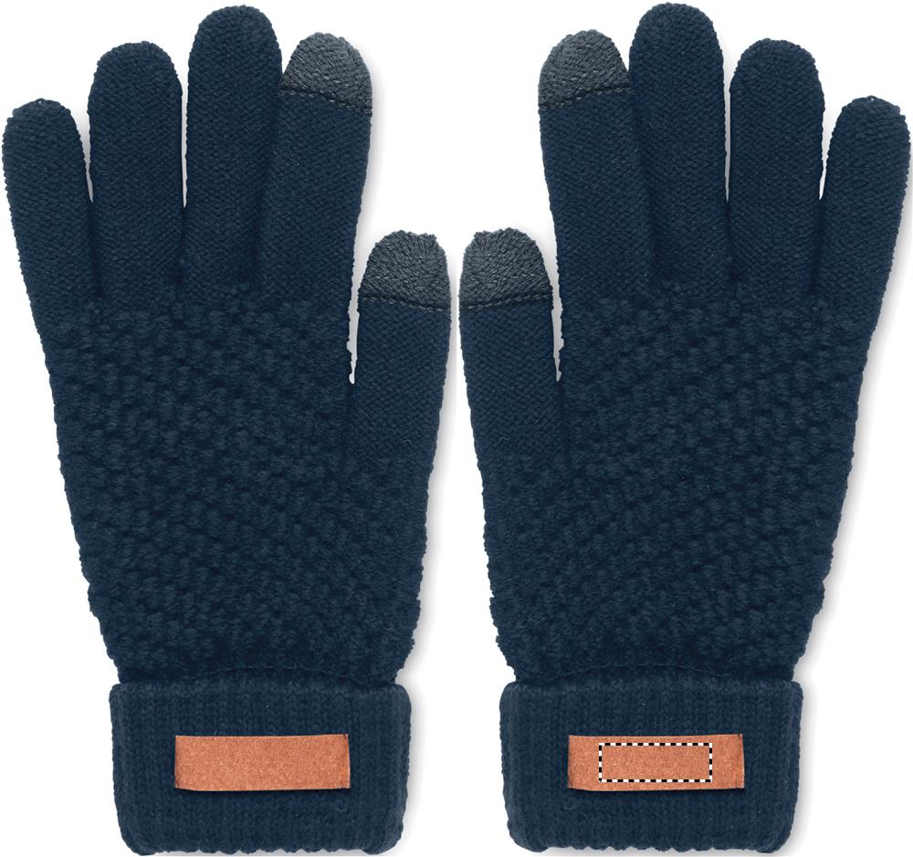 RPET kuitukankaasta valmistettu kosketusnäyttöhanskat, tuotteessa etiketti painatusaluetta varten.