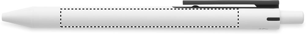 Kuulakärkikynä painonapilla kierrätetystä ABS-materiaalista. Valkoinen runko ja kontrastivärinen klipsi, sininen muste.