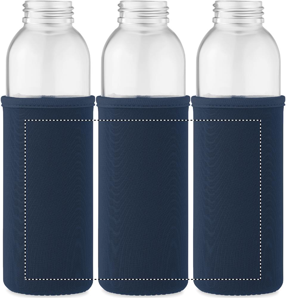 Kierrätyslasipullo, jossa neopreenipussi ja PP-korkki silikoniripustimella. Vuotamaton. Tilavuus: 500 ml.